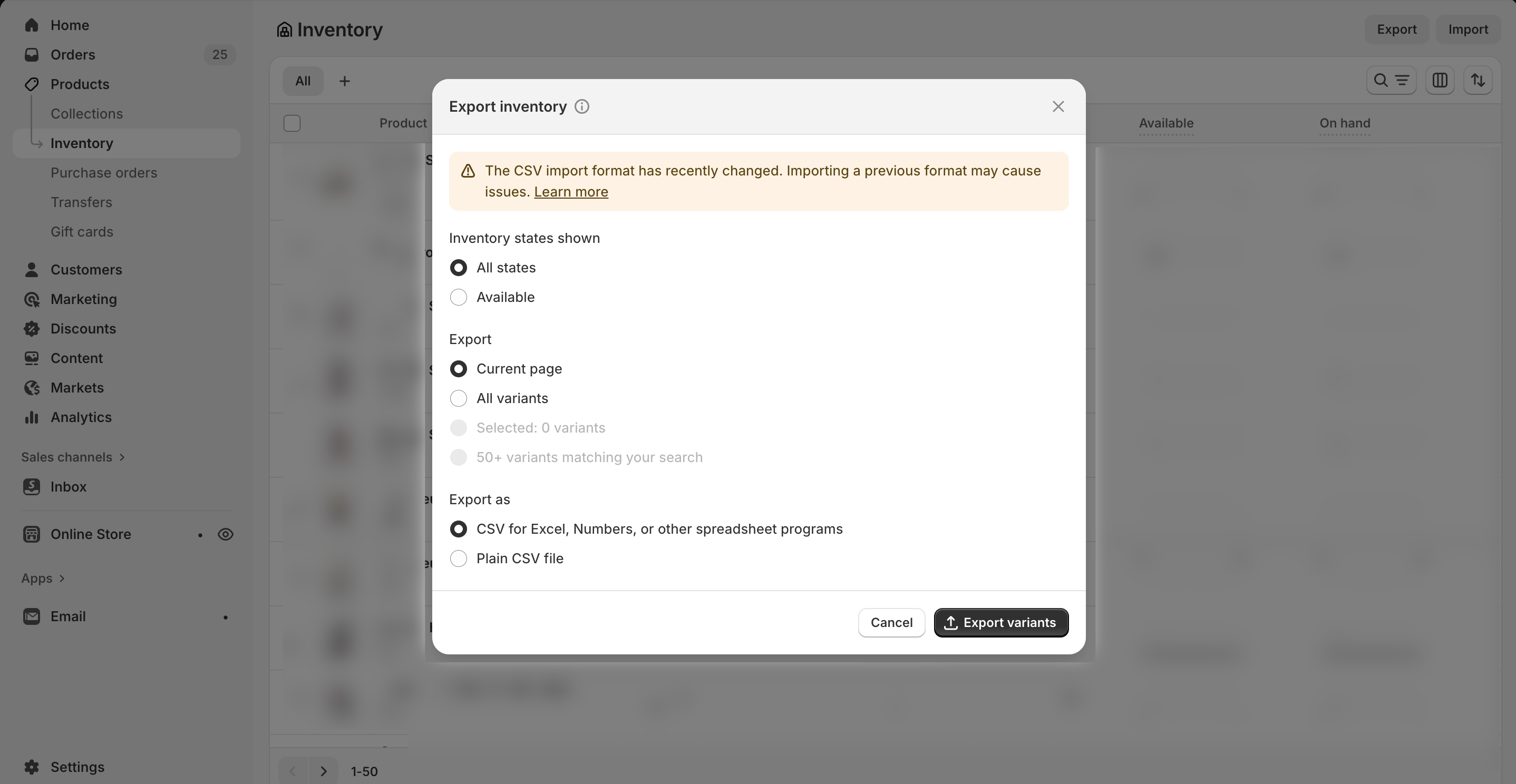 How to export Shopify inventory as a CSV