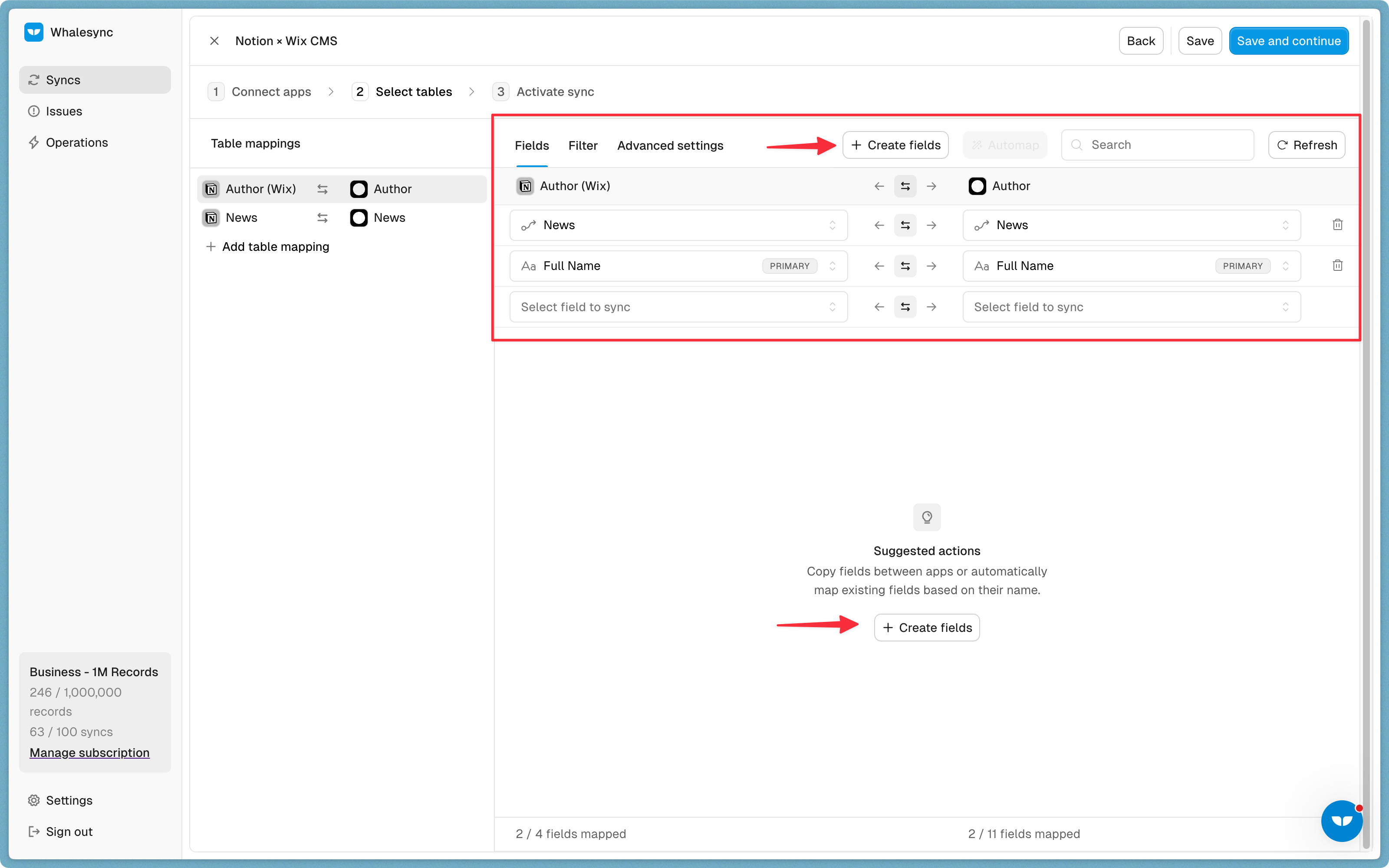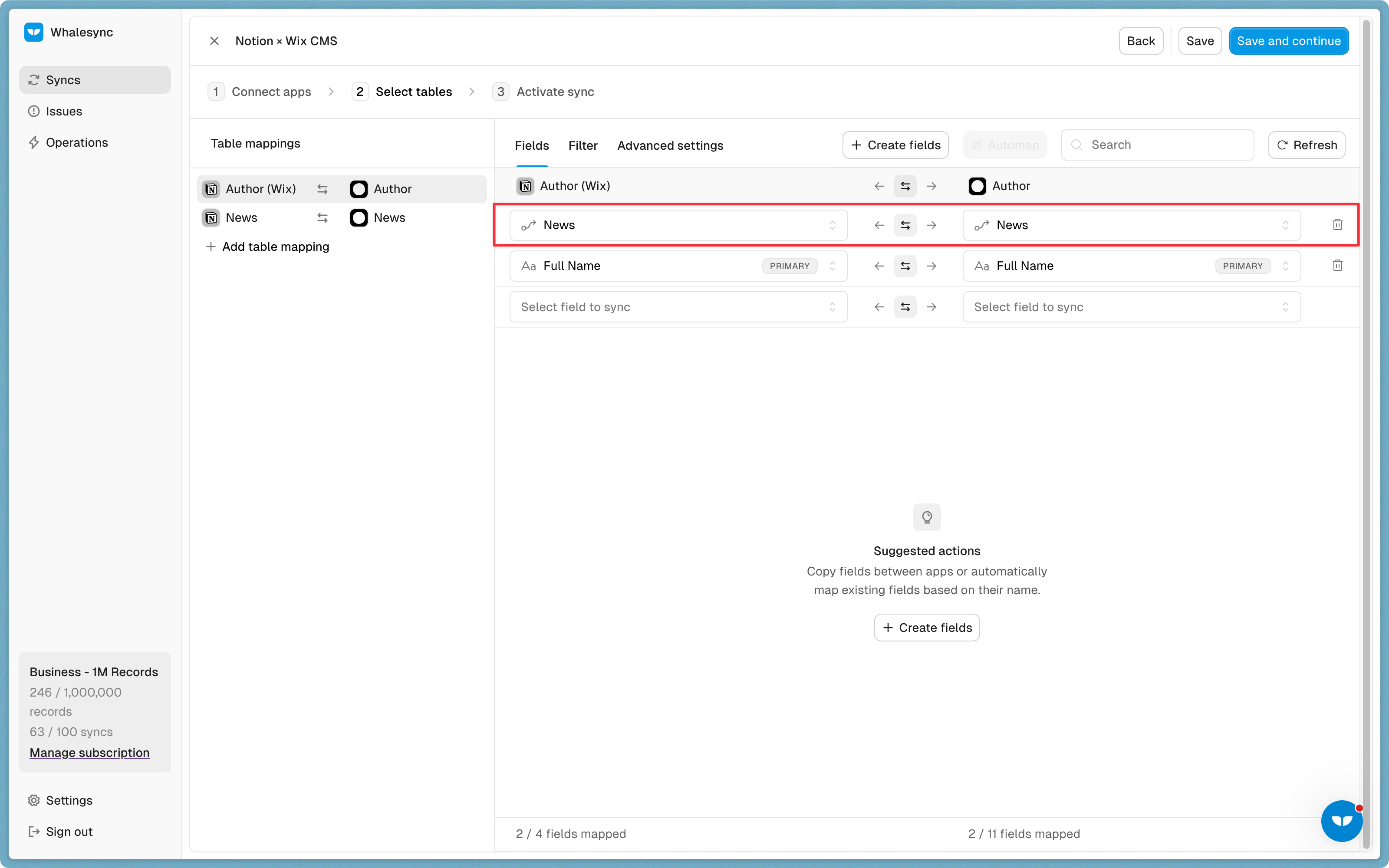 Select the fields you want to manage from Notion. You can choose to one-way or two-way sync them.