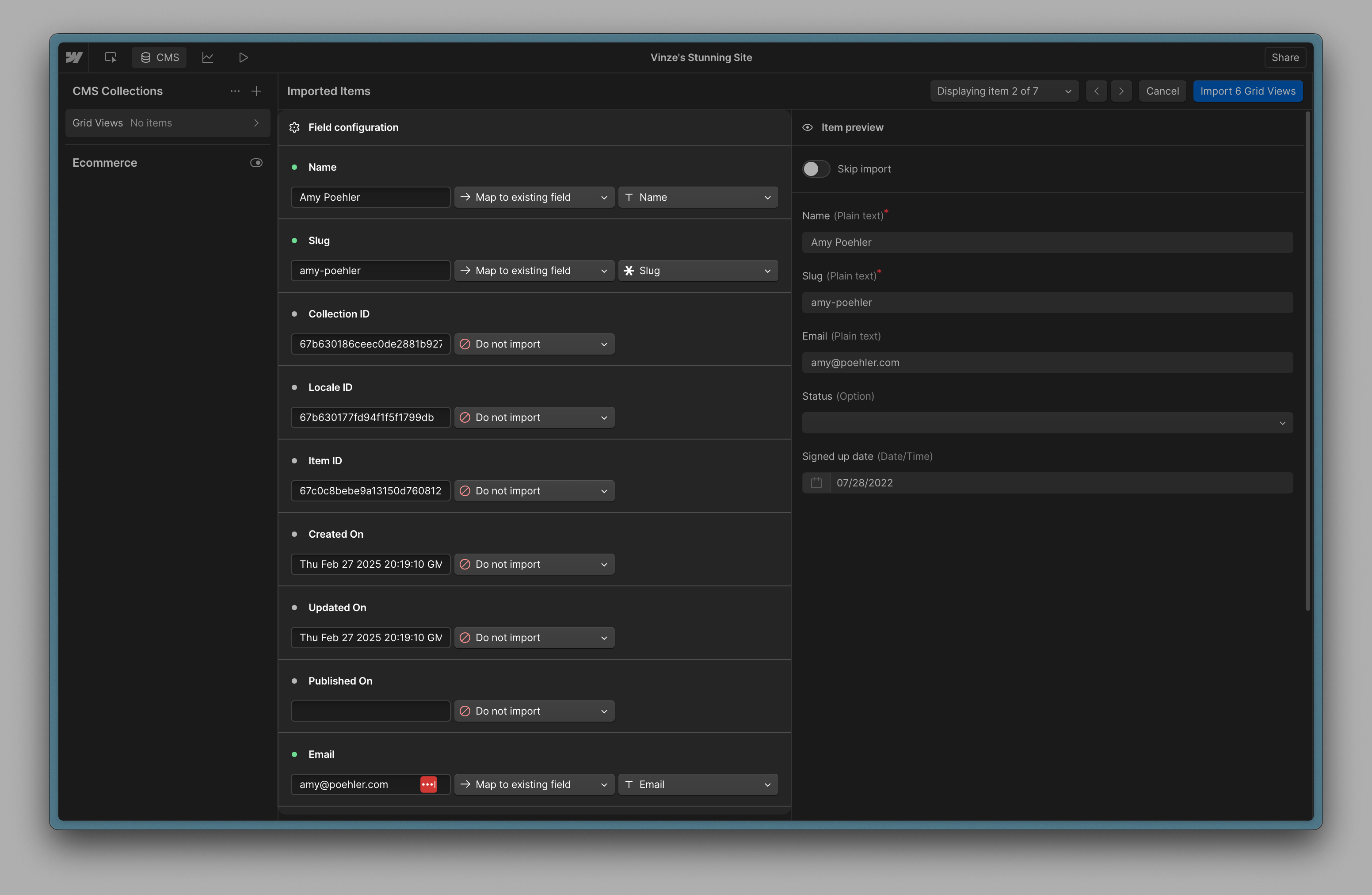 4. Your done! You just imported your CSV into Webflow. 🎉