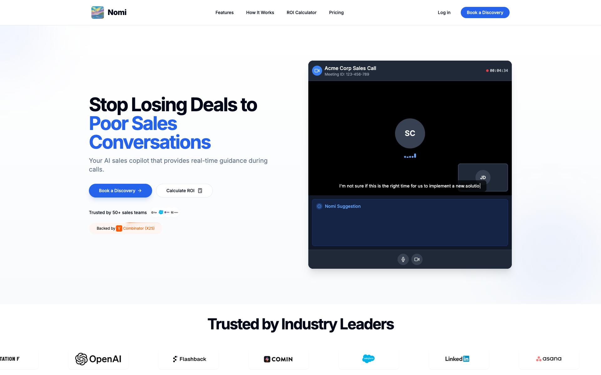 Sales call AI providing real-time phrase suggestions.